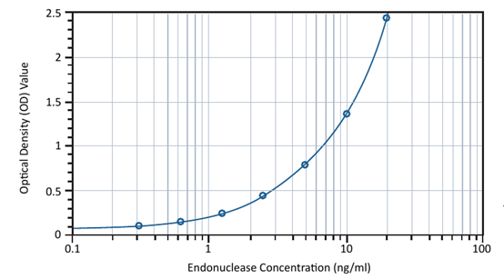 Cygnus EndonucleaseGTP ELISA試劑盒中的抗體是對來自粘質沙雷氏菌(Serratia marcescens)并通過基因工程改造的核酸內切酶免疫親和純化得到的。該試劑盒檢測限約為0.06 ng/ml,是一種靈敏、特異的檢測內切酶殘留的方法,適用于純化工藝開發(fā)、工藝監(jiān)控、日常質量控制以及產(chǎn)品放行測試中。該試劑盒操作方法簡便,主要原理是含有核酸內切酶的樣品同時與HRP標記的anti-endonuclease檢測抗體和96孔板中包被的anti-endonuclease捕獲抗體發(fā)生免疫反應結合。EndonucleaseGTP ELISA試劑盒中包含了用于評估核酸內切酶殘留的所有組分,以及一套校準的核酸內切酶標準品。