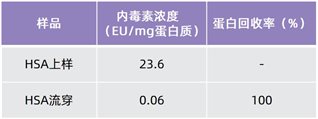 EtoxiClear?具有很高的內(nèi)毒素清除率,可從多種蛋白樣品中進(jìn)行出色的蛋白質(zhì)回收,如下表所示的人血清白蛋白(HSA)和免疫球蛋白(IgG)溶液(均為~9 mg/mL)。