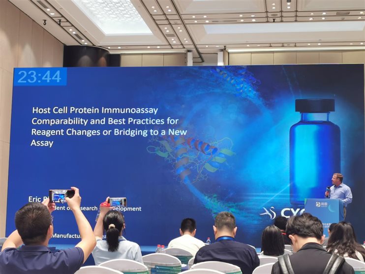 At the venue for "Antibody Protein Product Process Development and BLA", Eric Bishop, Vice President of R&D at Cygnus, delivered an excellent speech titled "Advanced Orthogonal Methods for Qualification and Bridging of Host Cell Protein ELISAs" to customers. He introduced and shared the latest methods for coverage analysis and representative cases, which received unanimous praise from the audience.